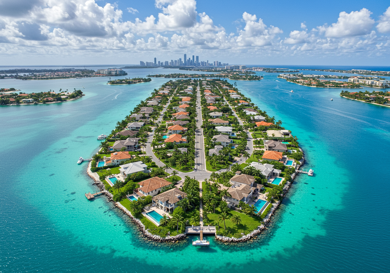 Biscayne Bay is a small but picturesque body of water that separates Miami and Miami Beach. A keen eye will note a collection of 11 island communities, three of which sit just off MacArthur Causeway — the most direct path between Miami and the celebrated neighborhood of South Beach. This trio of artificial islands includes the Star, Palm, and Hibiscus luxury developments, featuring some of South Florida's most extravagant and sought-after real estate.