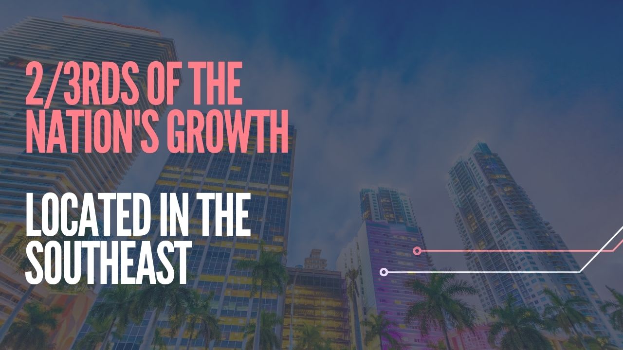 The Southeast region accounts for two-thirds of all new job opportunities in the United States and is the location of 10 of the 15 cities experiencing the biggest growth.