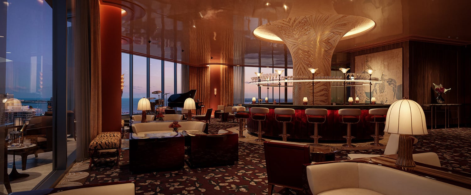 Connecting these towers is the 45,000-square-foot “Sky Bridge” — a multi-level Faena Rose cultural forum envisioned as the social and cultural heart of Faena Residences. Here, panoramic views meet rich programming: dining and gathering spaces, recreation, wellness experiences, and curated social environments designed to nurture connection and community.