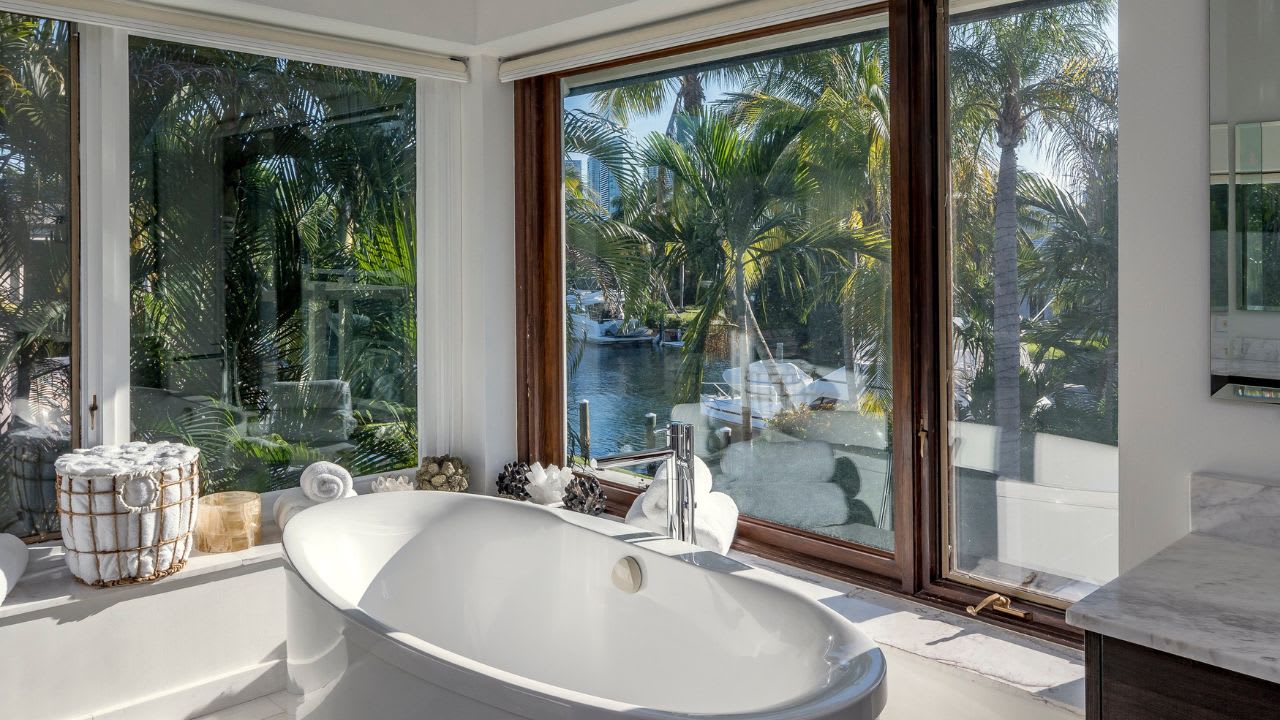 Located in the ultra-exclusive guard-gated community of Bay Point this waterfront architectural masterpiece of 10,414 square feet on a 15,599 square foot lot is reminiscent of Frank Lloyd Wright's legendary creations. With 30 foot high ceilings, walls of stone and a lush tropical entry lobby complete with floating staircase this estate is one-of-a-kind. With close proximity to exceptional dining and shopping the home features 6 bedrooms, 9 baths, a 94-foot private dock with direct access to the bay and ocean, chef's kitchen, discrete staff entrance, state-of-the-art spa, billiard room, outdoor kitchen, full service bar for indoor/outdoor entertaining, luxurious pool and jacuzzi as well as a separate children's pool. This unique home is truly a private resort and an absolute must see.