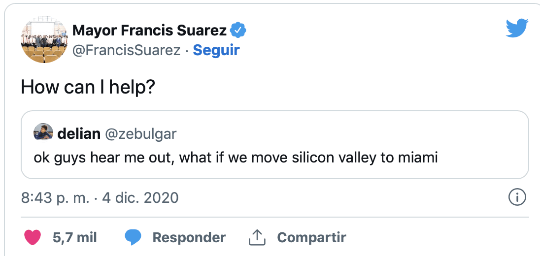 And it all started with a tweet on December 4, 2020 when Suárez, who put his Miami in the crosshairs of California tech investors with his response "How can I help?" The rest is history.