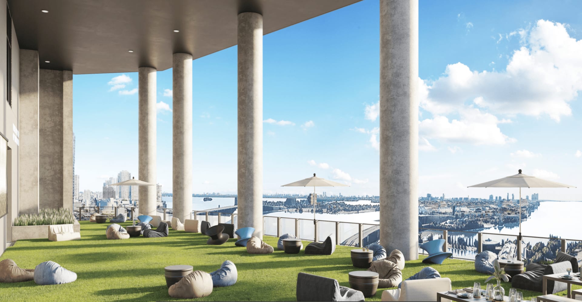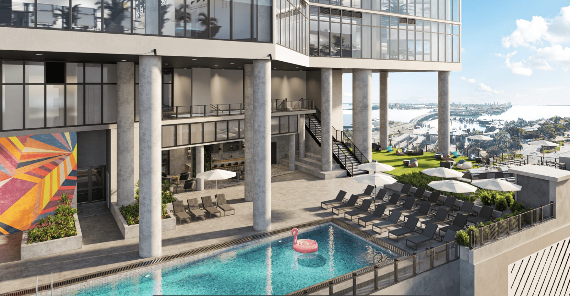 - Over 19,000 square foot double height amenity deck overlooking Downtown Miami and Biscayne Bay