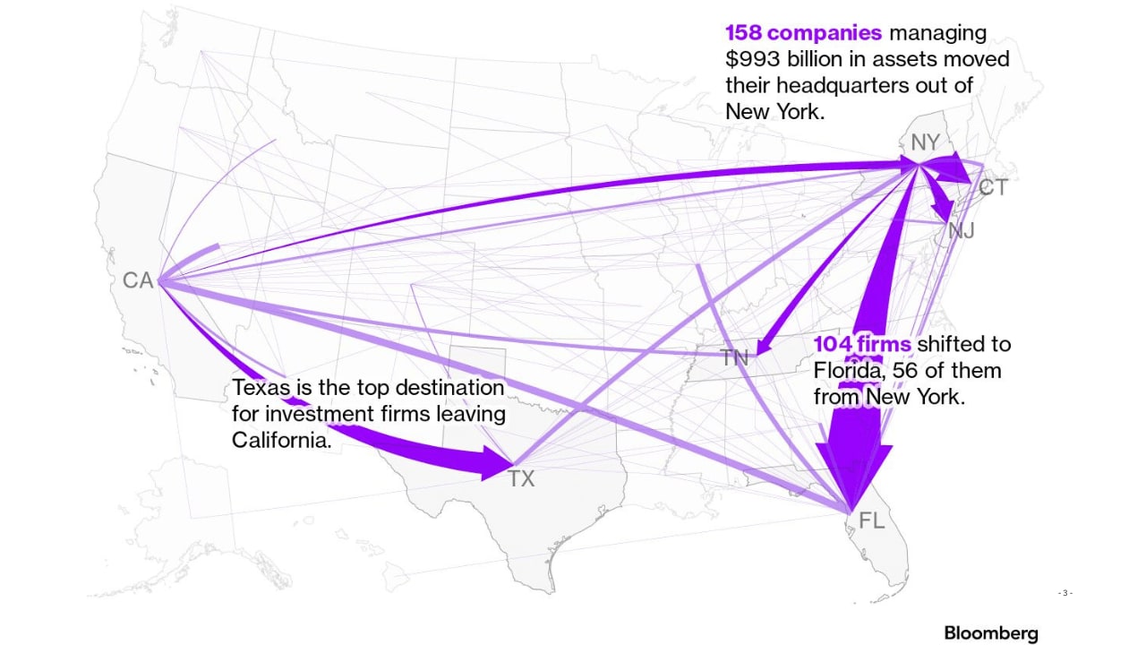 158 companies with $993 billion in assets exited NY, 104 of them moved to Florida