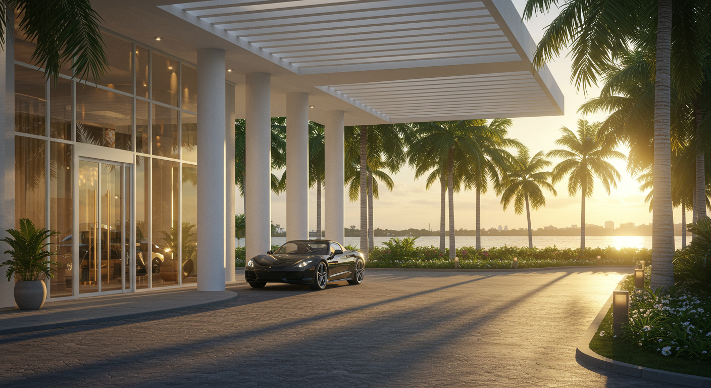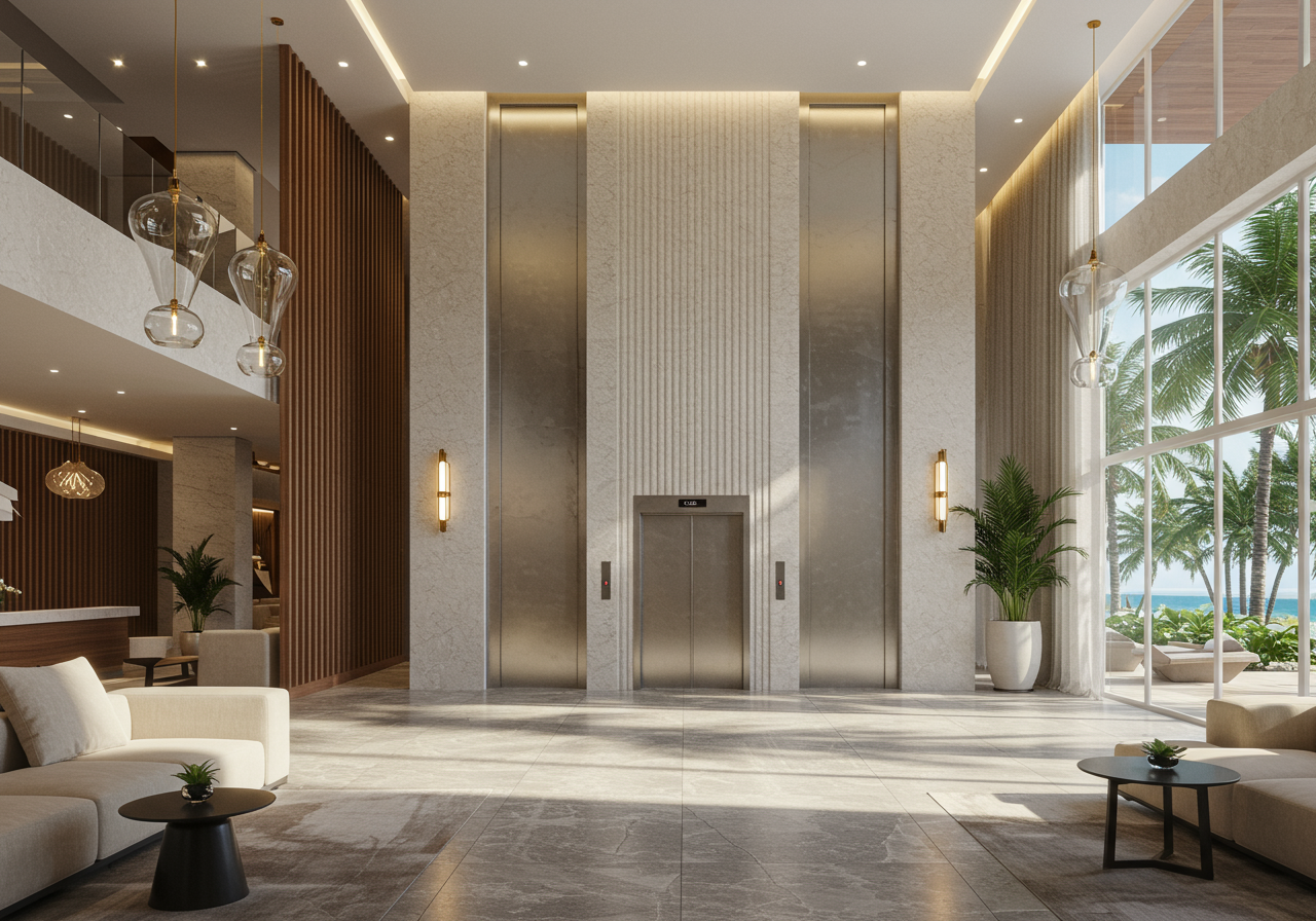 - Dramatic double-height lobby with open lounge area