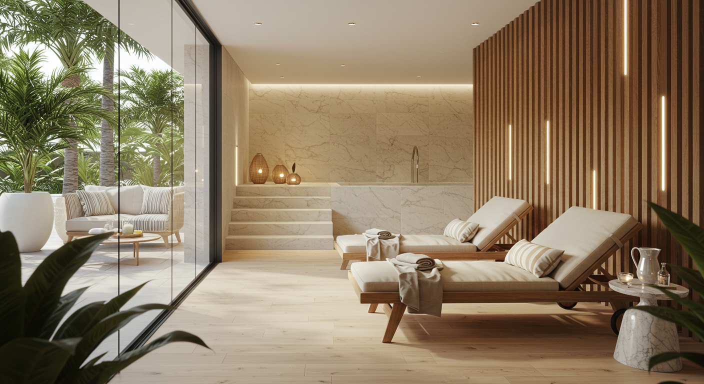 - Private spa with sauna and treatment rooms